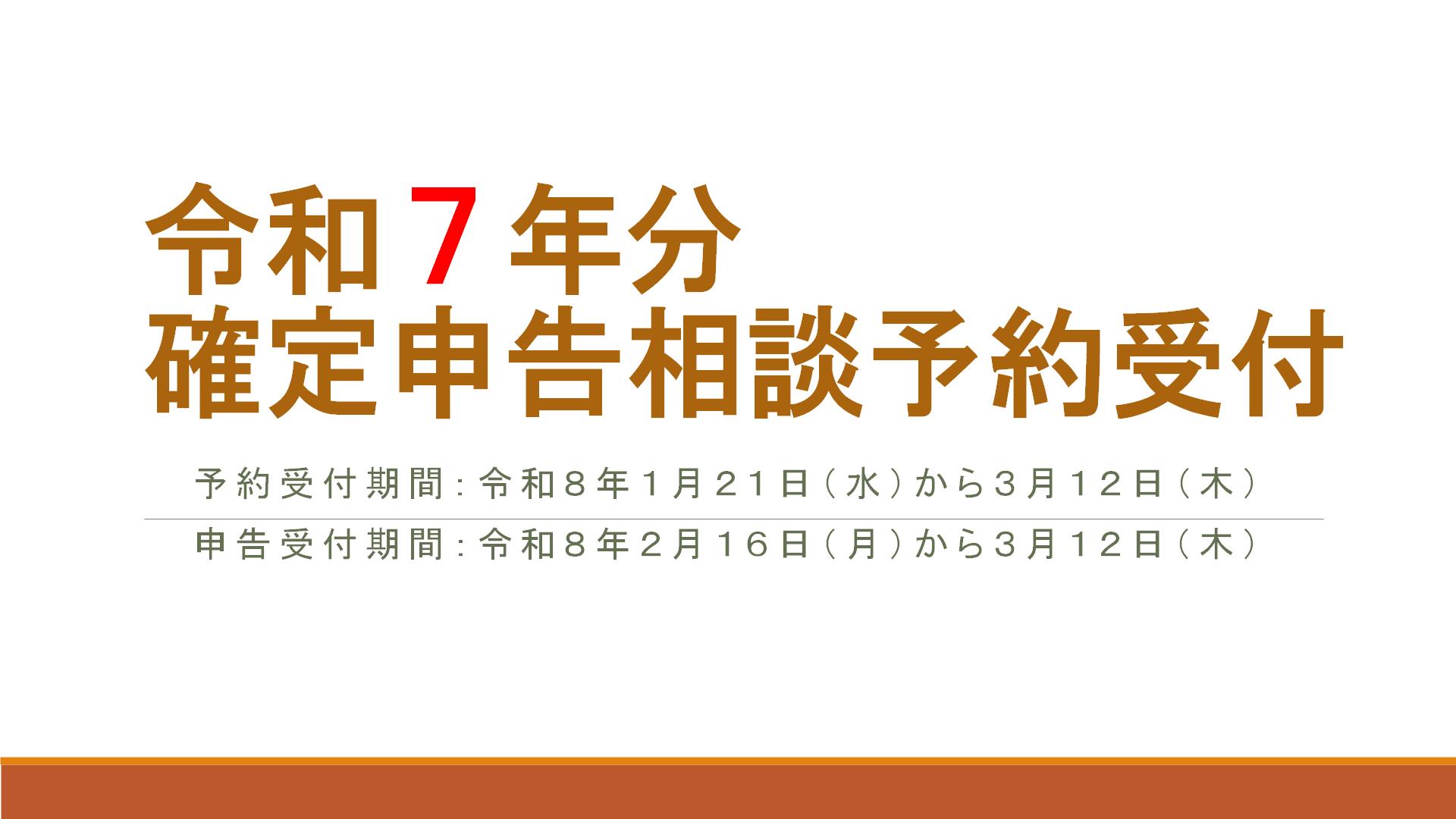 - 令和7年分確定申告相談予約受付