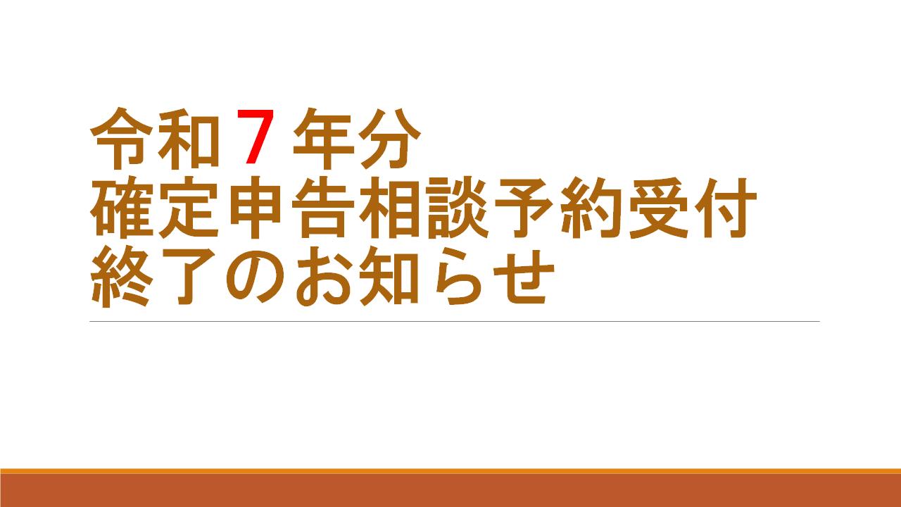 - 令和7年分確定申告相談予約受付終了のお知らせについて