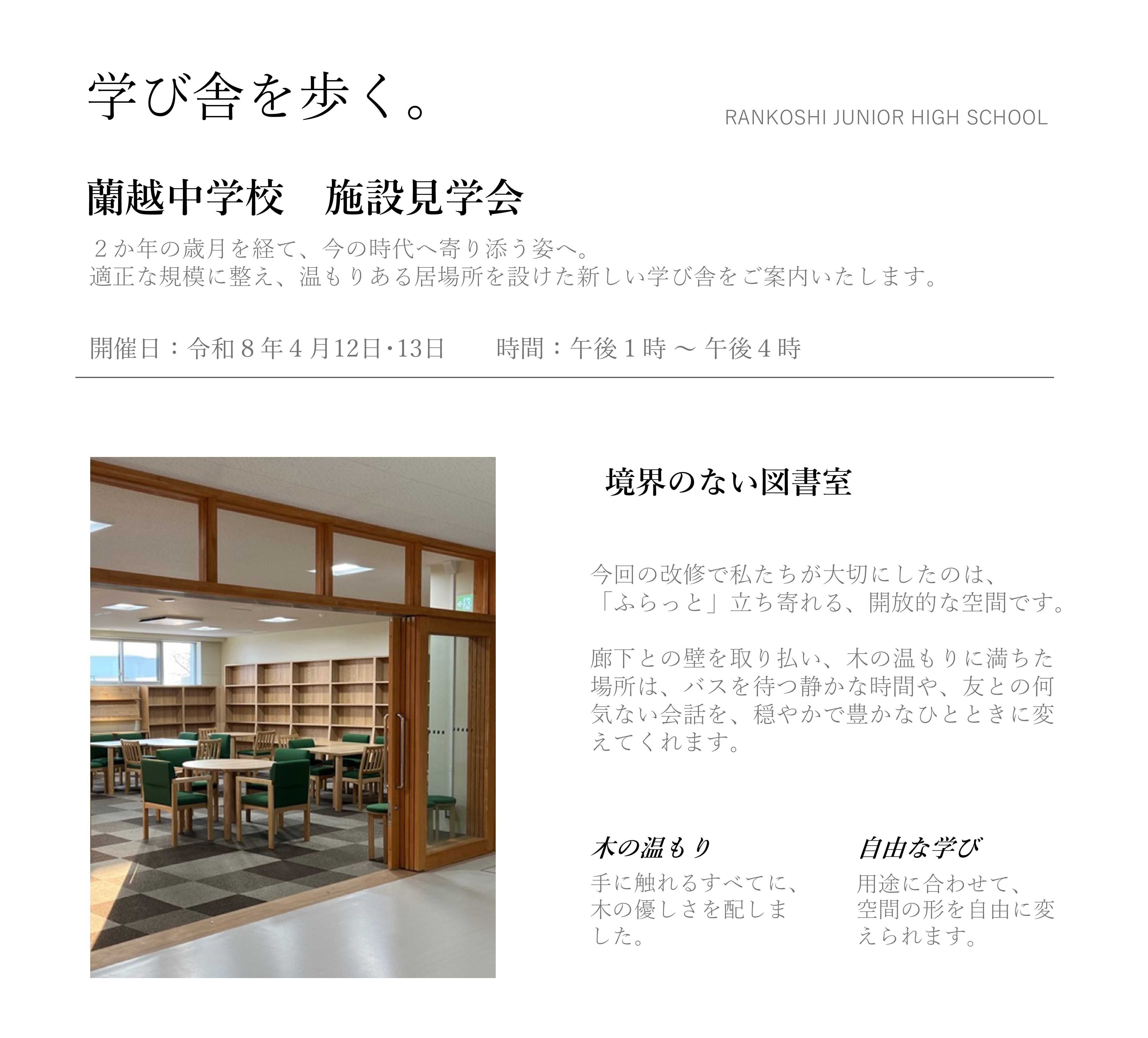 - 4/12(日)・4/13(月) 蘭越中学校 施設見学会